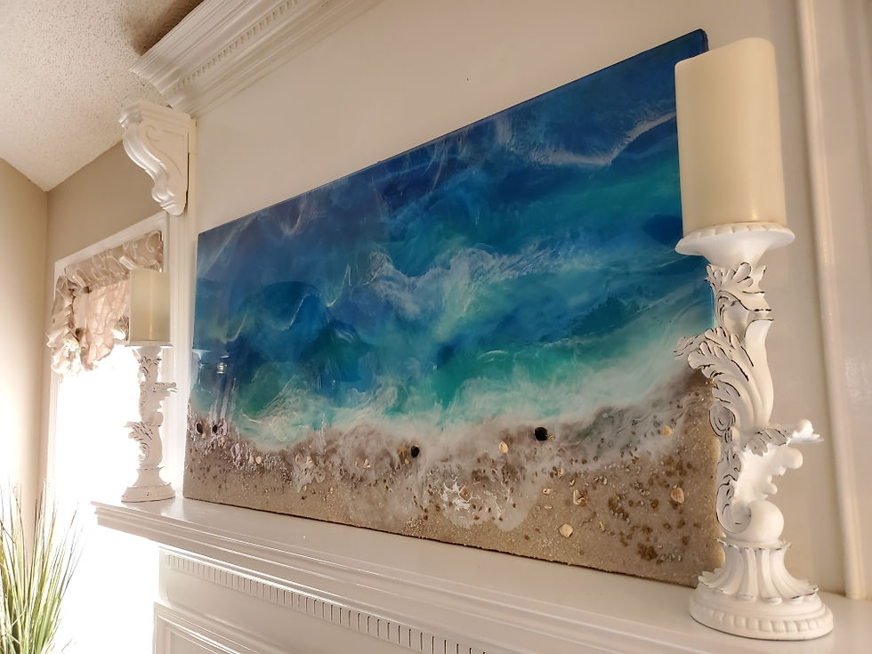 Brush Art, Paint Pour, and Ocean Scenery
